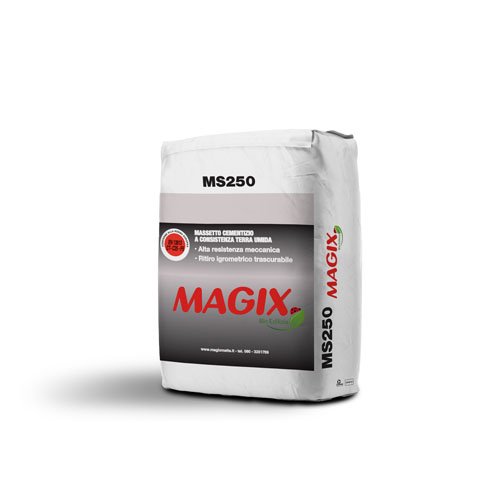 MS250 è un massetto cementizio a consistenza “terra umida” che trova impiego come strato di carico per interni ed esterni per pavimenti in legno,moquettes, parquet, PVC, linolium, ceramica, pietre naturali ecc..,per applicazioni particolari consultare il nostro ufficio tecnico.