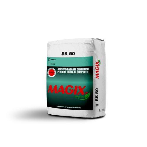 SK50 è una malta secca composta da cemento bianco/grigio Portland, inerti calcarei ed additivi specifici che ne migliorano le caratteristiche di lavorabilità e prestazionali.